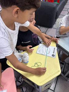 13/1/2026 – Contornando os Planetas com Lã Posted on 13/01/202614/01/2026 by Marketing Cada aluno recebeu uma imagem de um planeta impresso e contornou as linhas com as cores do planeta ou com as cores que queriam. G2 e G3 juntos.