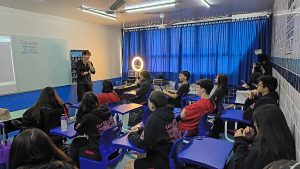 Nesta semana, tivemos a honra de receber em nossa instituição o ex-aluno Raphael Zocaratto, que ministrou uma palestra aos alunos da 3ª série do Ensino Médio. Durante o encontro, Raphael compartilhou sua trajetória no Colégio Dominante, sua entrada na Faculdade FAAP, onde cursou Rádio, TV e Internet, e falou sobre sua atuação atual como Produtor no mercado profissional.