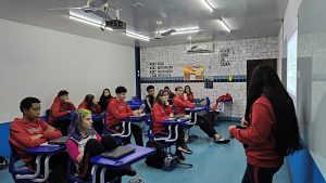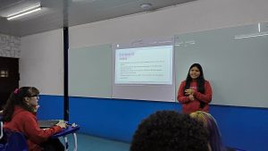 A aluna Britney, da 2ª série do Ensino Médio, conduziu um momento de grande reflexão e diálogo entre os colegas, trazendo questionamentos importantes e promovendo trocas significativas. Para encerrar, ela propôs uma dinâmica envolvente, que despertou sentimentos positivos e deixou os alunos muito felizes.