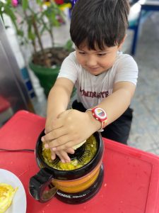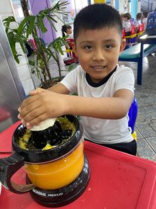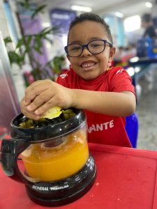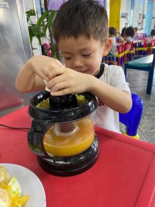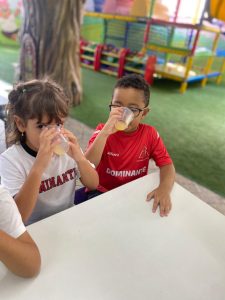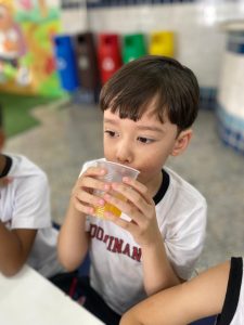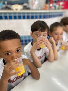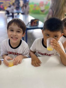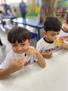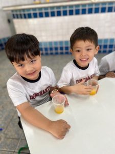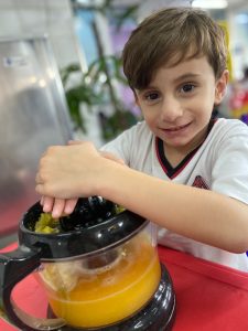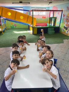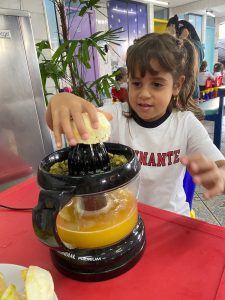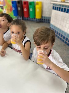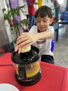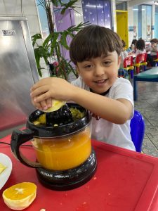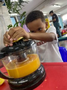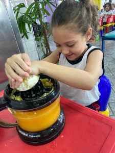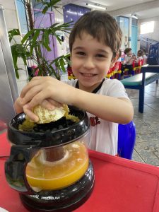 Relembrando os conceitos de cheio e vazio, os alunos do pré fizeram um delicioso suco de laranja natural, incentivando a autonomia nos afazeres e cuidando da saúde, ao saborearem um suquinho cheio de vitaminas!!! Foi uma delícia!