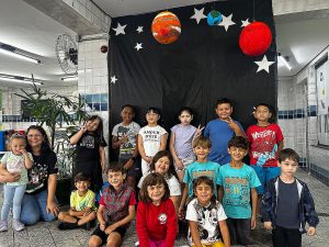 8/1/2026 – Abertura das Férias – Missão “Domi Espacial” Posted on 08/01/202612/01/2026 by Marketing Nossos pequenos iniciaram os primeiros desafios da nossa viagem intergaláctica: a missão “Domi espacial”! Com um vídeo interativo e confecção de crachás, demos início à nossa jornada!